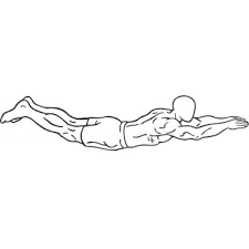 Lie facedown with arms and legs extended, toes pointed, palms down. Inhale while raising arms and legs as high as you can; pause, then exhale while slowly returning to starting position. Do 3 sets of 15 reps.
