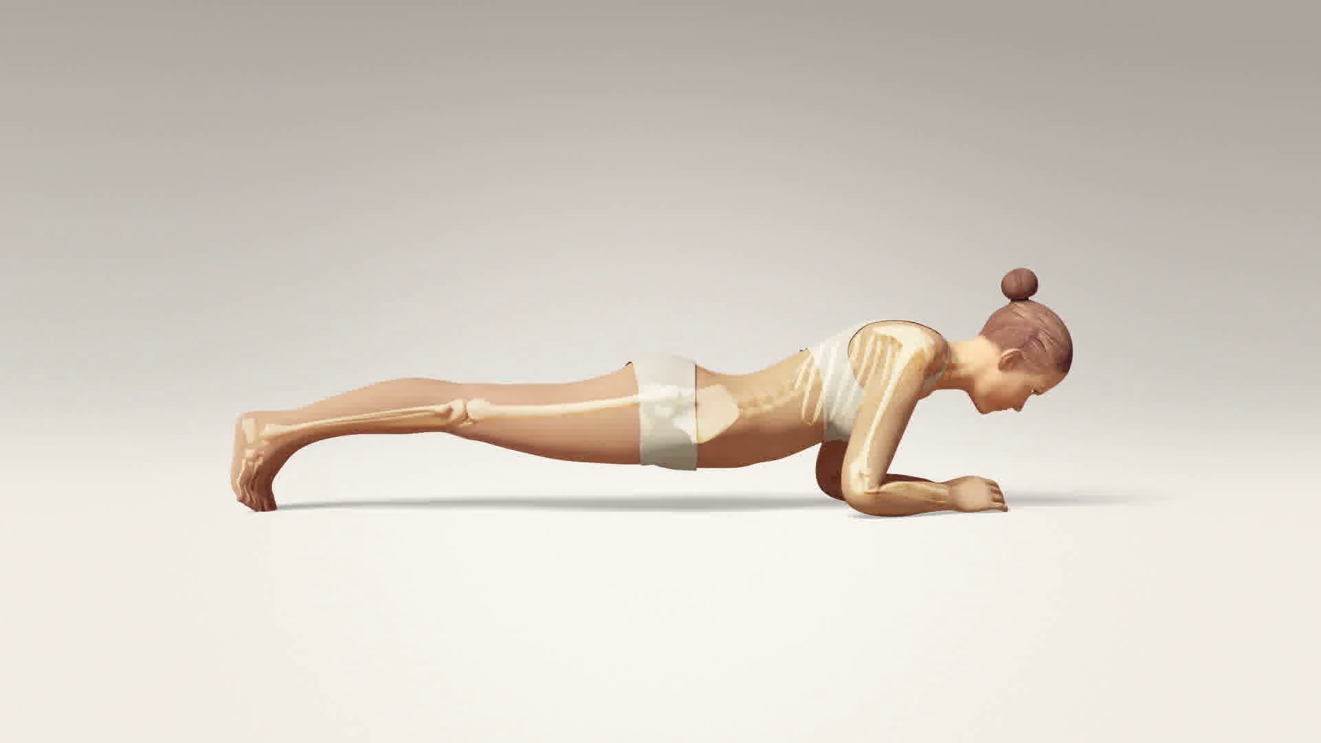 A. Lie facedown with toes tucked. Keeping forearms on floor, pull bellybutton in toward spine, and raise hips to come into low plank position.